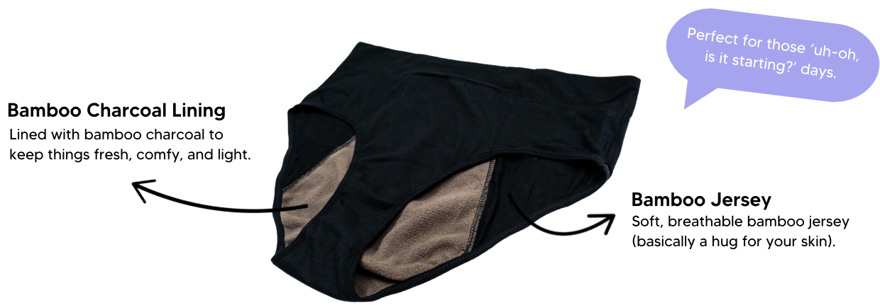 Extra leak-proof protection when worn with our Mighty Popper Period Pads for or for those ‘not sure yet’ days, end-of-cycle moments.